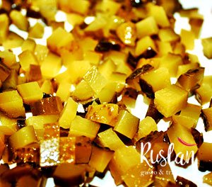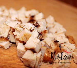 - Il taglio di quasi tutti gli ingredienti di questa insalata è a dadini piccoli di circa 7/8 mm.