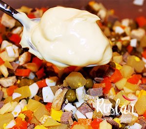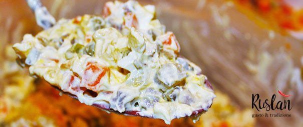 Potete conservarla riponendola in frigorifero in un recipiente ermeticamente chiuso per un max di 24 ore.L’insalata “Ruslan” è un ottimo antipasto per qualsiasi occasione. Potete servirla nel piatto di ciascun commensale o metterla in un’insalatiera e lasciarla sul tavolo per tutto il pranzo o la cena. State pur certi che i vostri ospiti ne prenderanno ancora!Buon appetito!