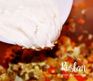 - Aggiungete la maionese e successivamente la smetana (o panna agra).