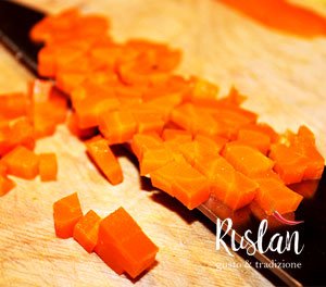 - Lessate le verdure nel seguente modo: in due pentole separate lessate con la buccia le patate e le carote. (N.B. Si possono cuocere anche senza buccia e già tagliate a dadini da crude, in acqua o al vapore – operazione che facilita il taglio – ma vi assicuro che il gusto non è lo stesso…). Cuocete a fuoco lento con il coperchio:15 minuti per le carote e 20 minuti per le patate dal momento del bollore. Nonostante il tempo indicato provate con la forchetta la consistenza delle verdure.